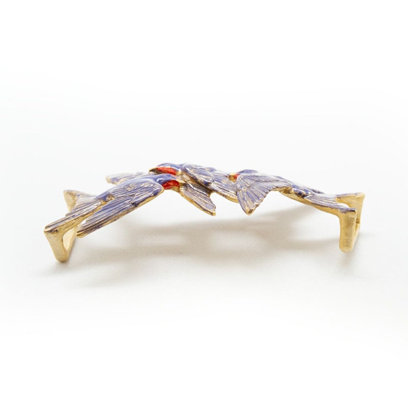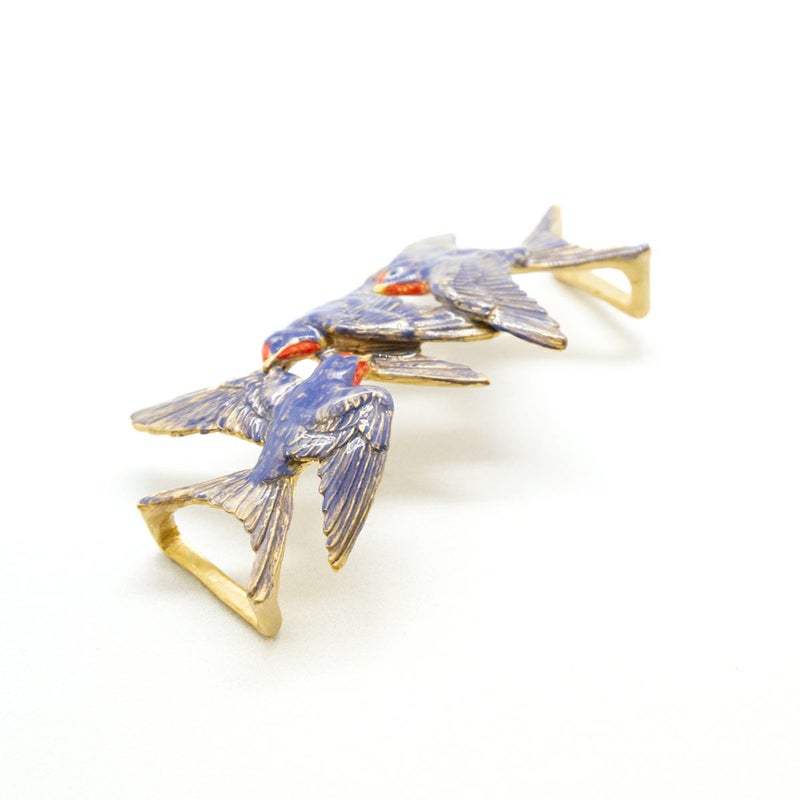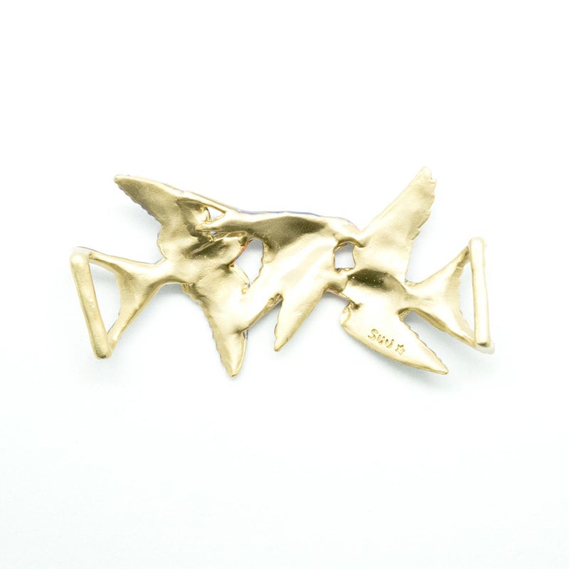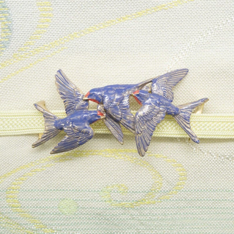 尾羽が金具と一体になっており、帯からふわりと浮かんで見えるユニークなつくり。本当に飛んでいるような軽やかさに、心も弾みます。