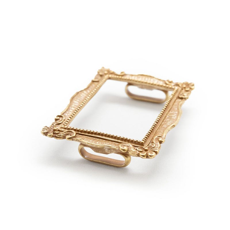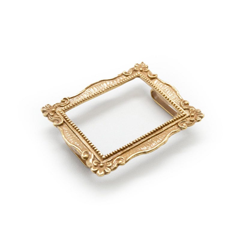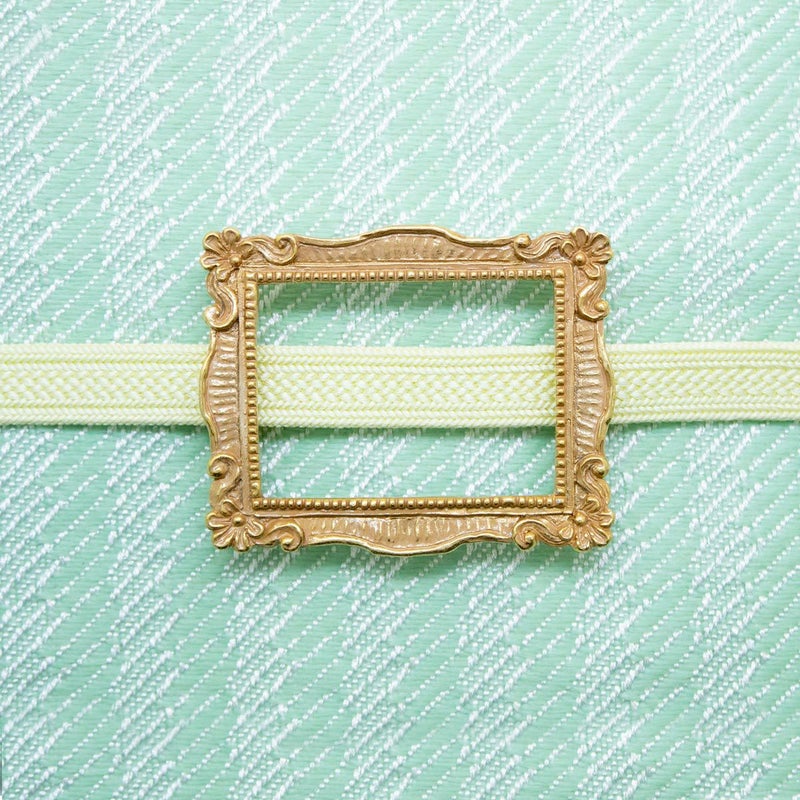 お気に入りの小さめ帯留めを中に額装することで、まるで美術鑑賞を楽しむかのような贅沢な装いに。