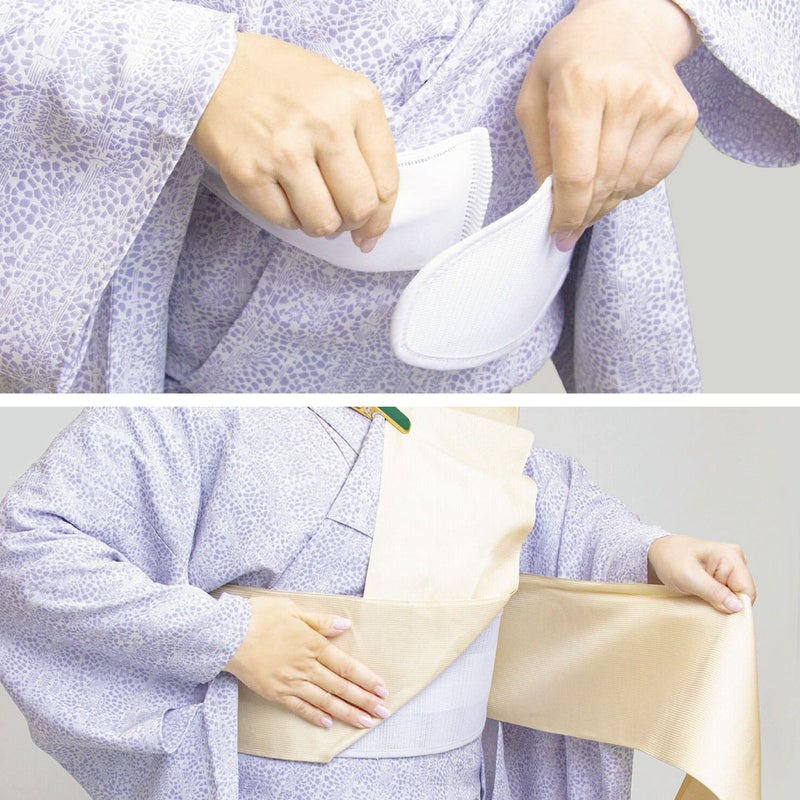 スタッフM 【年齢:40代 身長:152cm】 普段前結びはしませんが、半幅帯をすることも多いのでするりと回せるのはうれしいです。 一年を通してヘチマの帯板を使用していましたが、柔らかいので帯締めを締めるとしわが寄ることも。 この帯板は幅もしっかりありますし変なしわが寄らないのがうれしいです。 以前お手頃なメッシュの帯板を使用した際に汗がたまってあせもができてしまい心配でしたが、そのようなこともなく快適です。 裏ワザ芯棒は、私には2本は多かったので1本は取り換え用にしたいと思います。