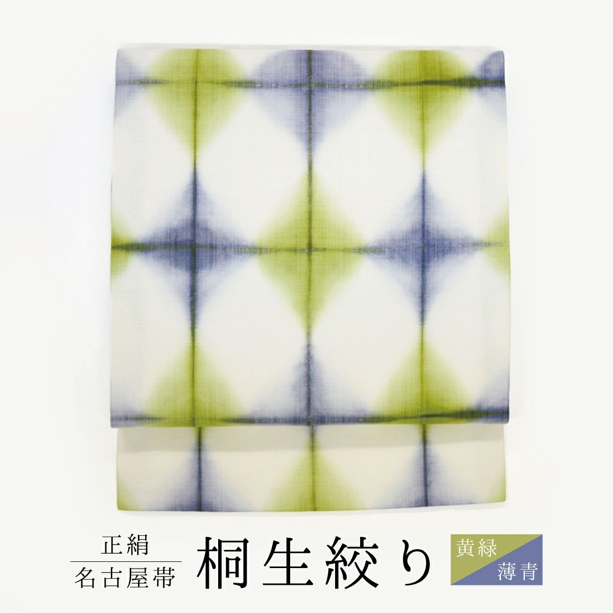 他の画像を見る ★10%OFF★【CHIKUMO-千雲-】正絹桐生絞り名古屋帯 黄緑x薄青 板締め くるり SALE 新着アイテム 送料無料 定価 ¥ 89,760 のところ 価格: ¥ 80,784 税込 カートに入れる お気に入りに登録する