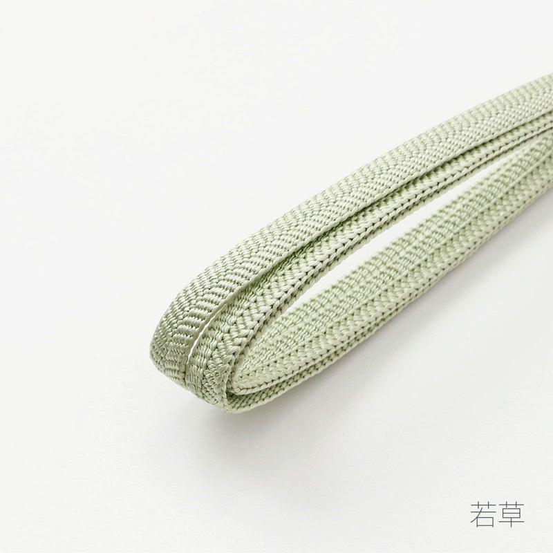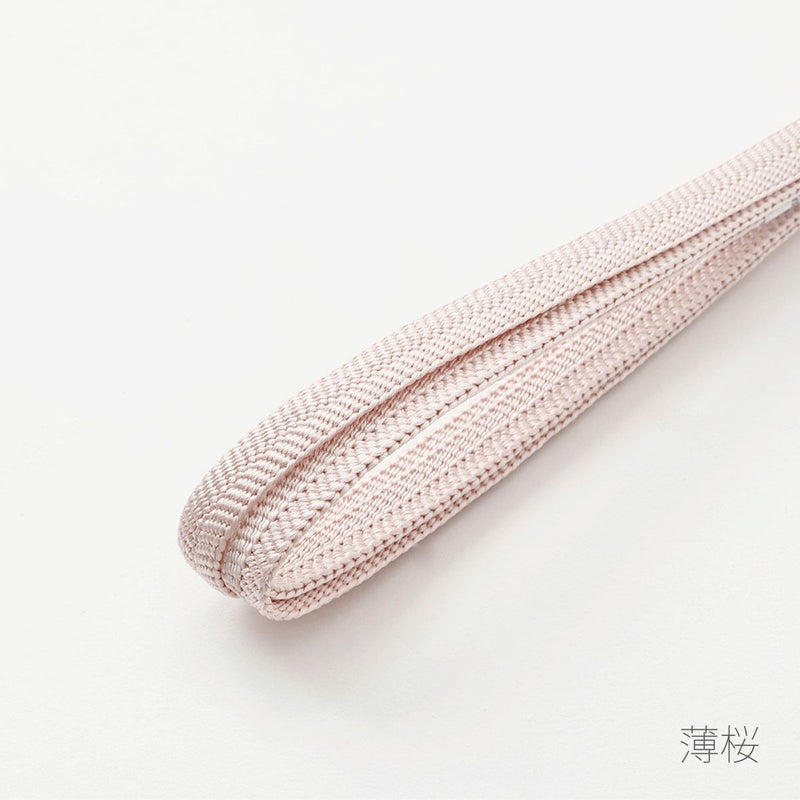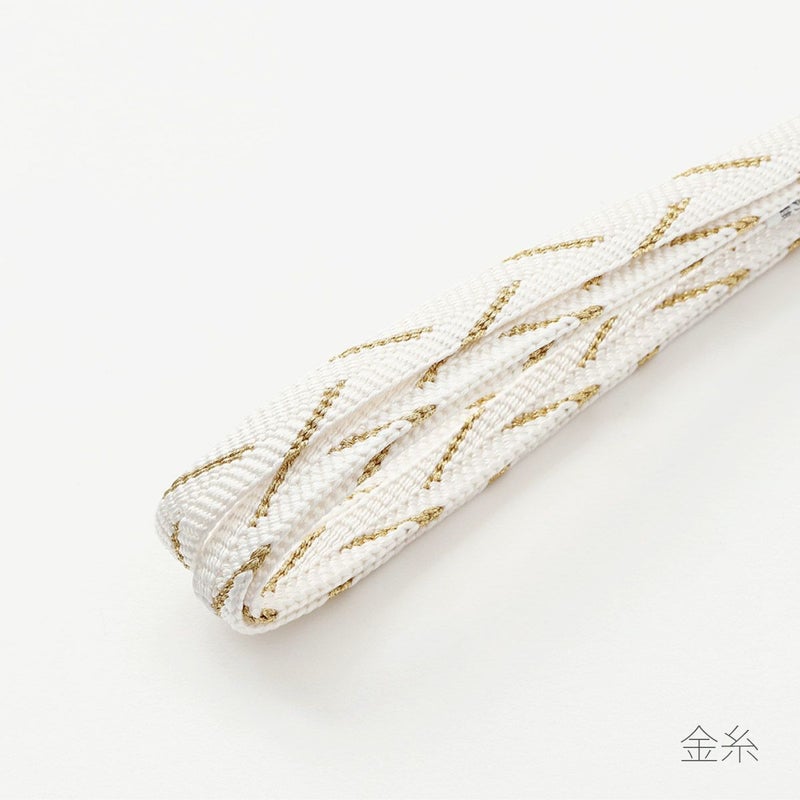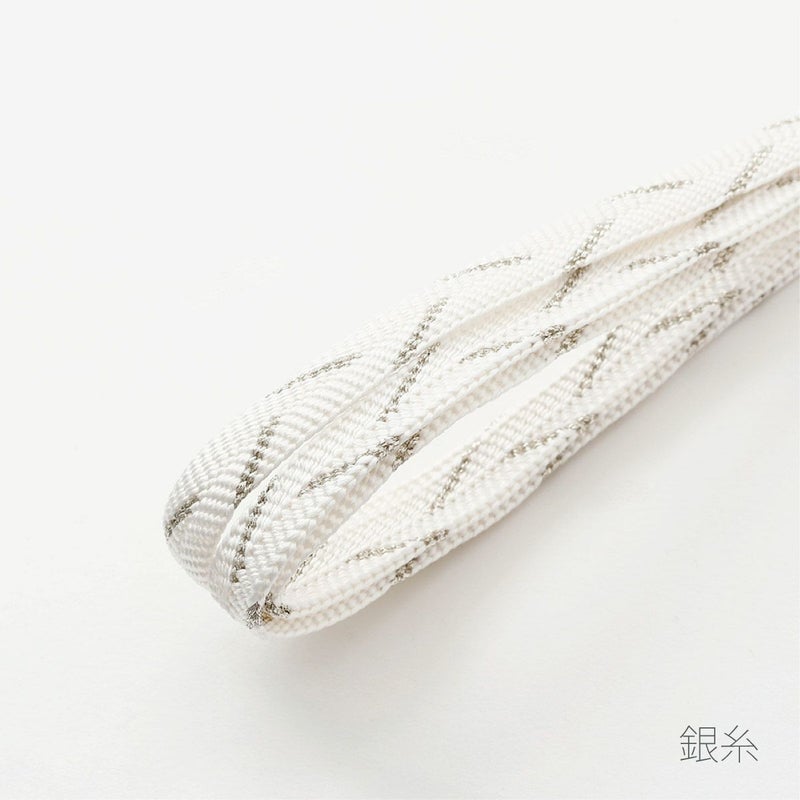 絹の美しい光沢、笹波組の立体感とその陰影が魅力の三分紐です。
