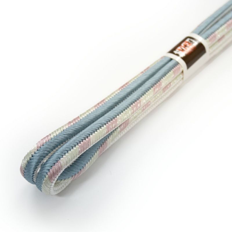 銀糸はごく控えめに使い、絹の艶で光沢感を表現した上品な帯締めです。