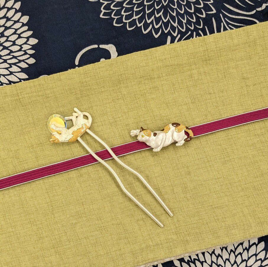 帯に魚や手毬などの柄を合わせると、猫が狙っているようなユニークなコーディネートが作れます♪