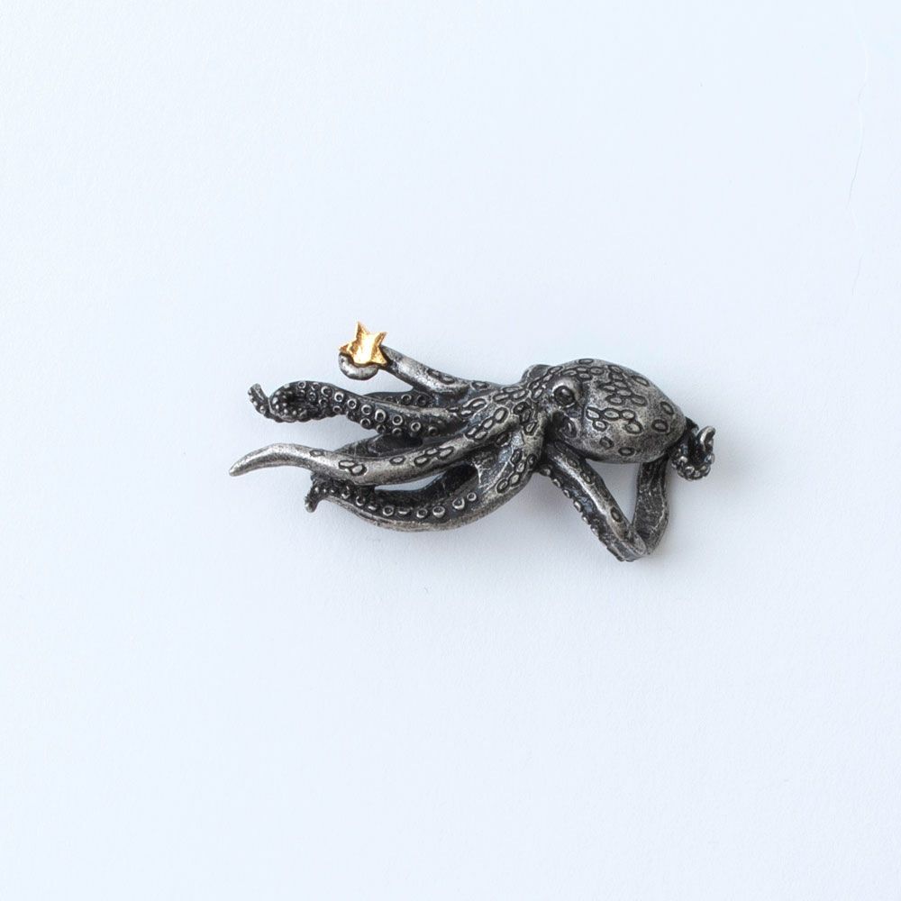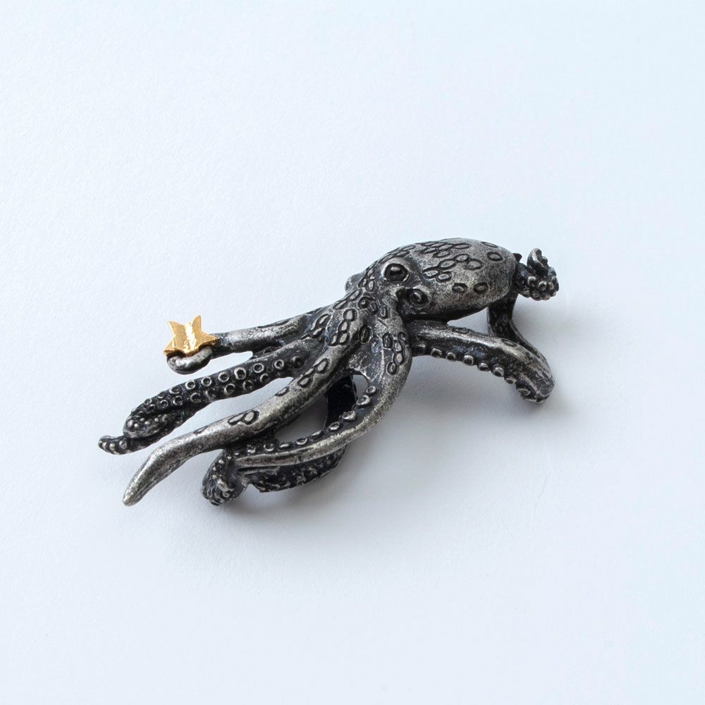 からみつく足の様子は、細部にまでこだわり丁寧な細工になっています。裏側の金具部分も蛸の足が表現されています。