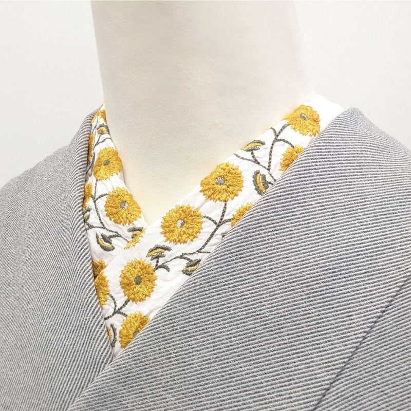 濡れているときにすぐにアイロンをかけてから干して乾かします。バスタオルを畳んでふかふかにしたところに半衿を裏返しておき、アイロンかけます。