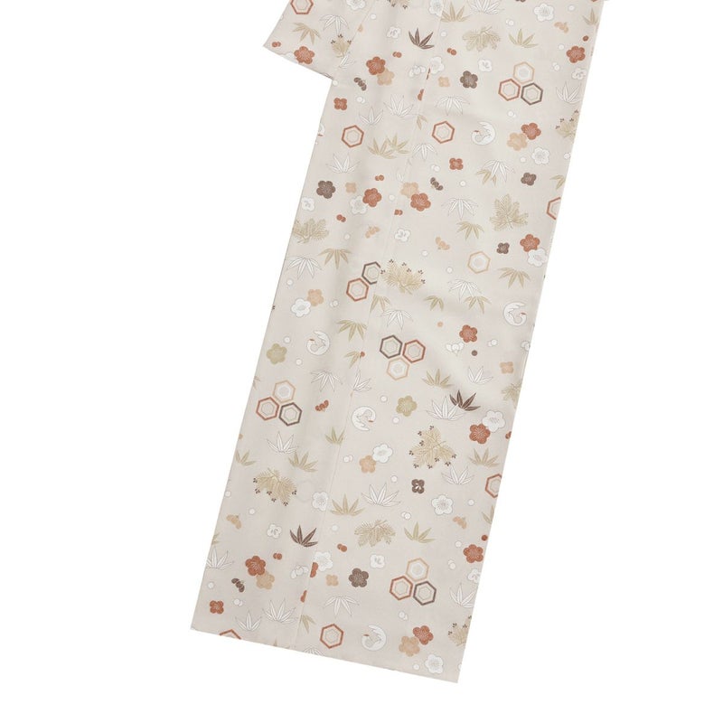 お祝いの気持ちを込めた装いをしたい時はもちろん、コロンと可愛らしく描かれた文様には普段使いしやすい気軽さもあるので、帯あわせで着用シーンの広がる一枚です。