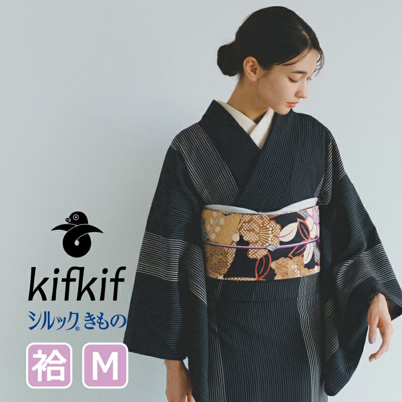 【kifkif】お仕立て上がり 東レシルック小紋 Mサイズ 細縞 墨黒 くるり