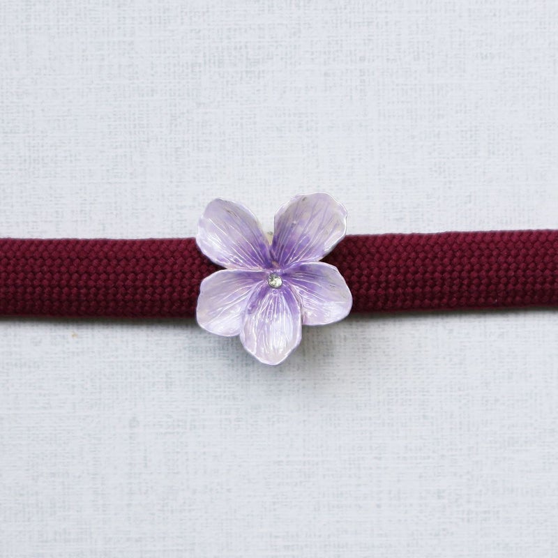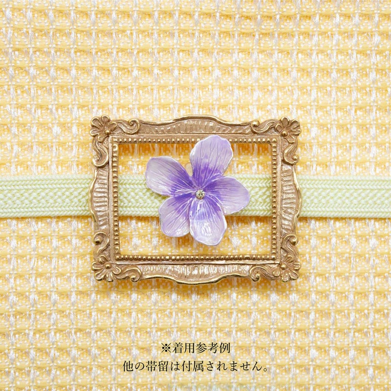 細部まで繊細に表現されたスミレ、美しい藤色に目を奪われる帯留めです。