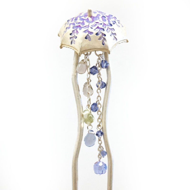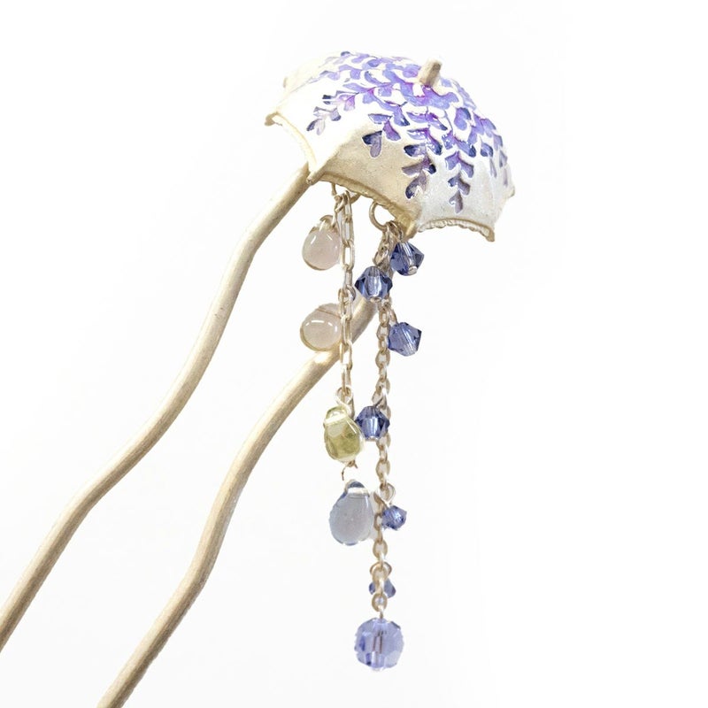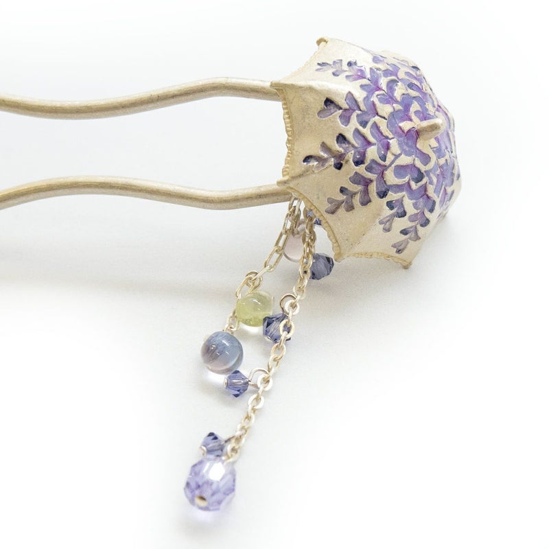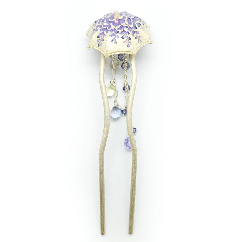 藤の花をあしらった傘をモチーフにした、情緒あるかんざし。