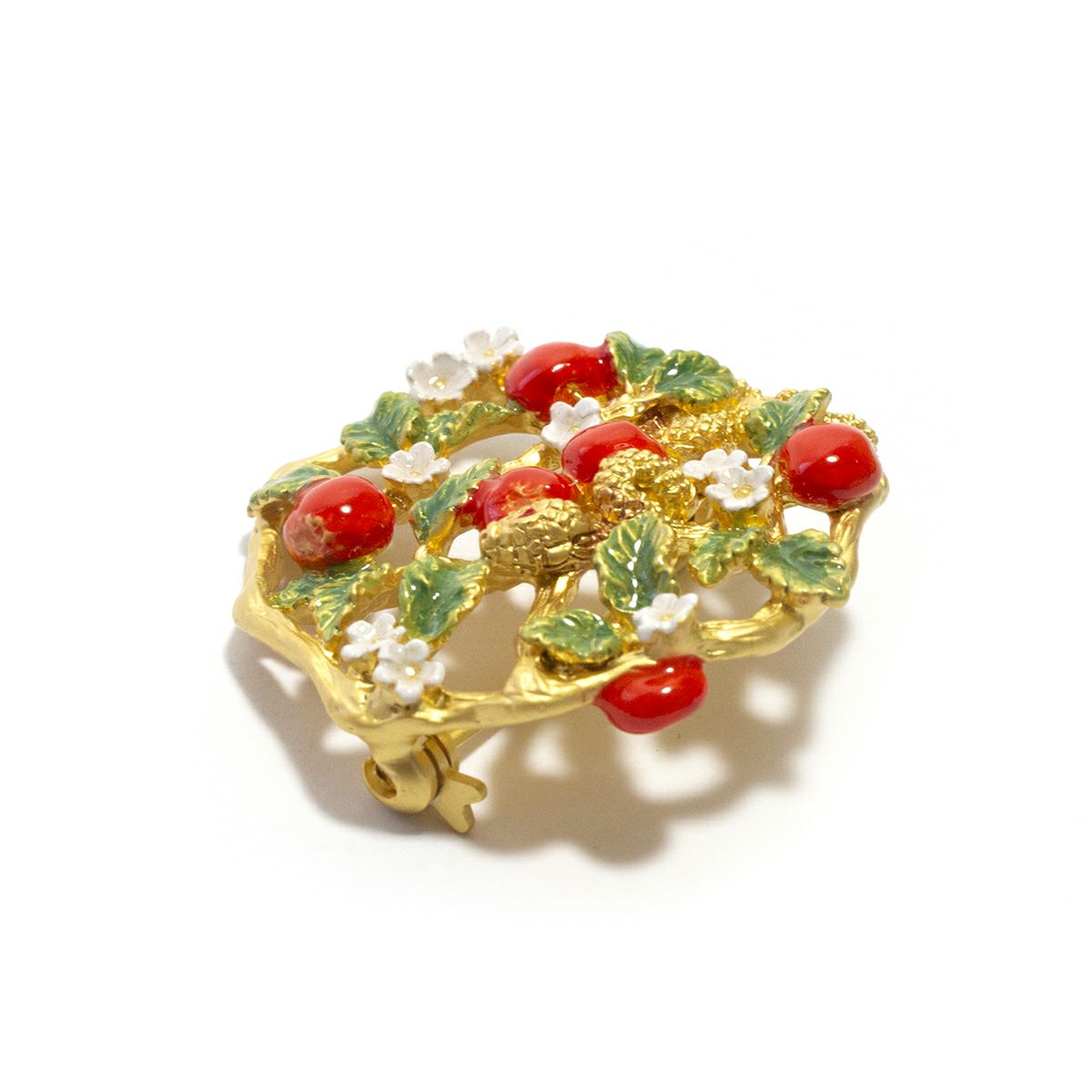 食べごろの林檎と可憐な花が美しいリンゴ園のブローチ♪