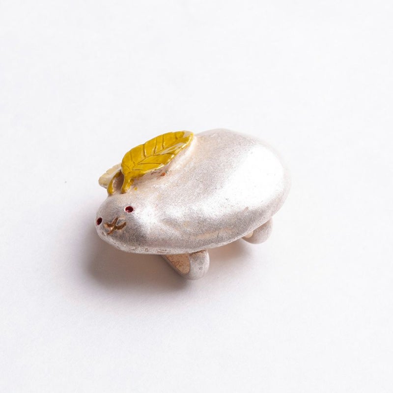 ぷっくりと思わず触りたくなるような愛らしい雪うさぎの帯留めです。目は南天の実、鼻と口は木の枝でできています。