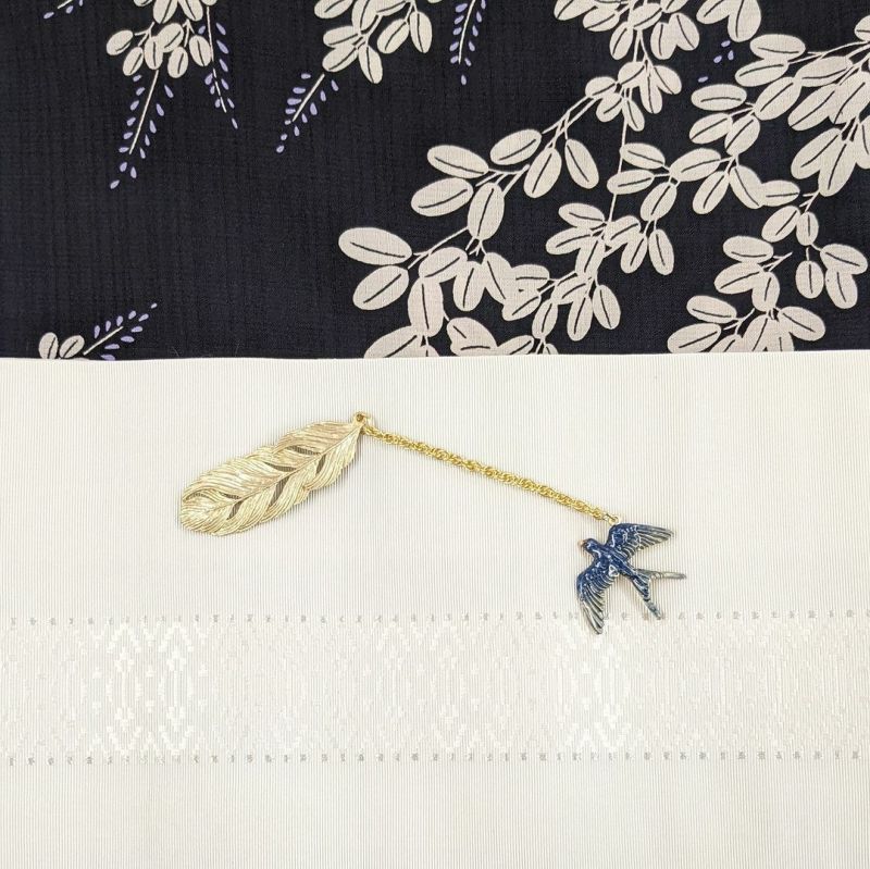 オスつばめの特徴でもある尾羽は長く、帯の上で揺れる様子は風を切って優雅に滑空しているよう。