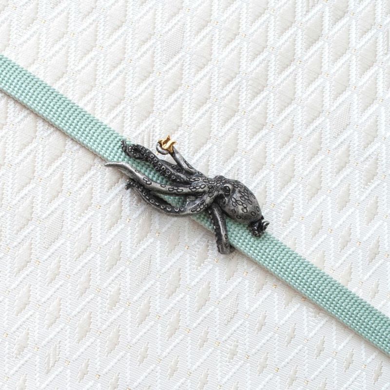 からみつく足の様子は、細部にまでこだわり丁寧な細工になっています。裏側の金具部分も蛸の足が表現されています。