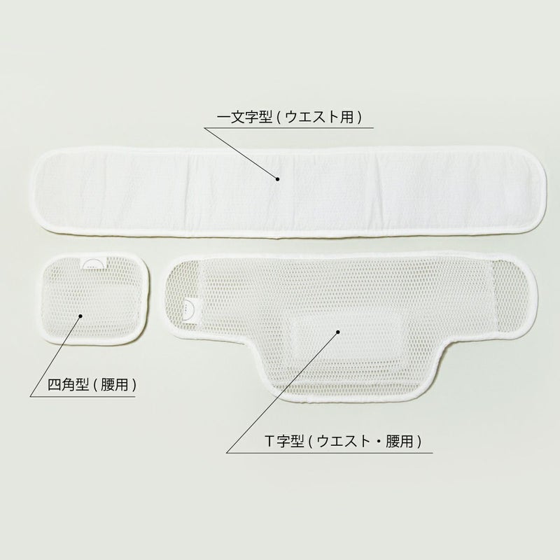 ウエストと腰を一枚で補整する »『T字型(ウエスト・腰用)』 ウエストをしっかり補整する »『一文字型(ウエスト用)』 お尻との段差を補整したいときの »『四角型(腰用)』