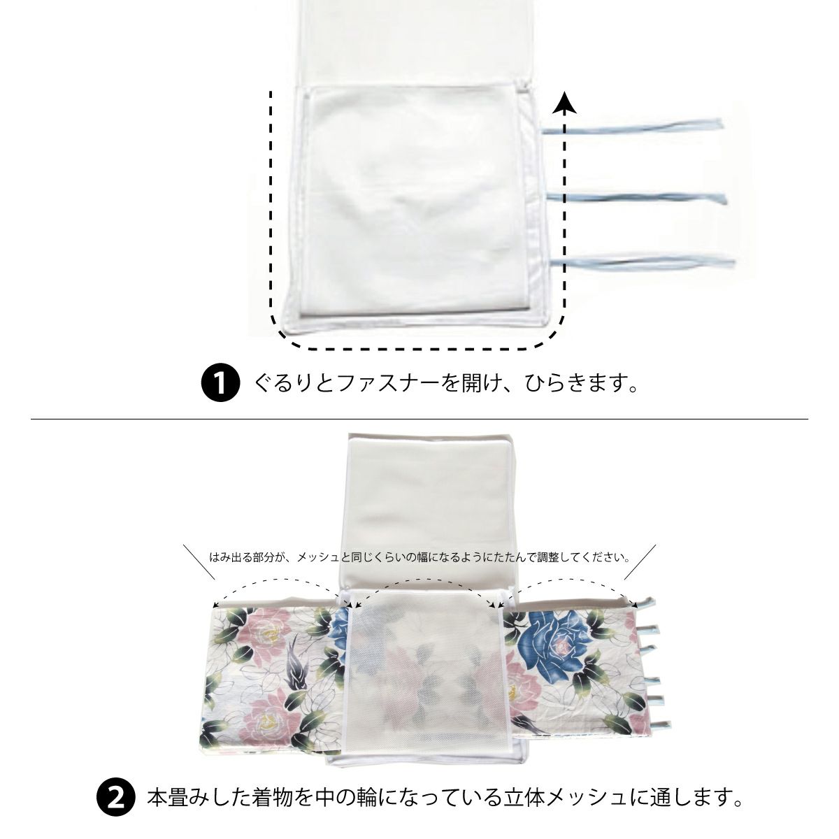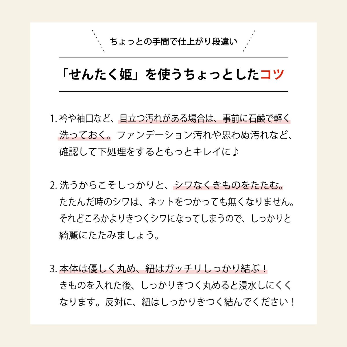 スタッフM 【年齢:40代 身長:152cm】 ふつうの洗濯ネットでもお洗濯はできますが、こちらのネットは『きもの専用』ということで、ネットの中で動いたりしないので余計なしわは寄りません。 汗や汚れはしっかり落とし、変なしわはつかないように工夫がされており、お気に入りの着物を丁寧にお手入れできます◎
