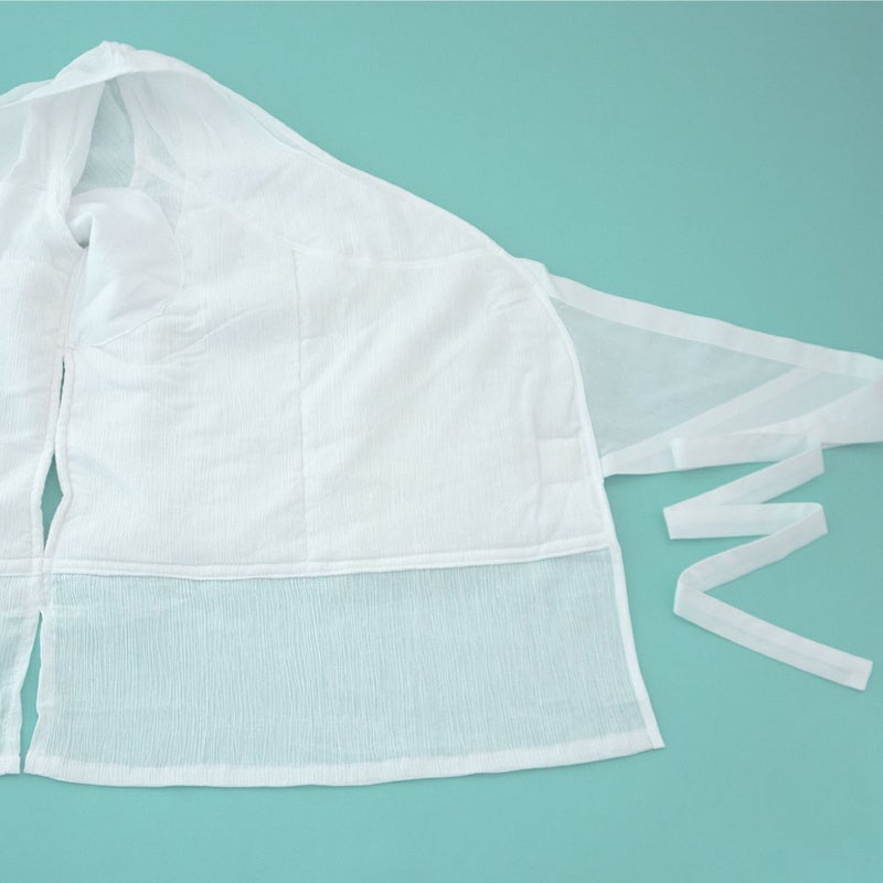 ブラ無しでも綺麗な胸元。うそつき襦袢にもなる補整肌着「くノ一 麻子」。 大切な着物を汗から守り、肌触りバツグンの綿楊柳と綿楊柳の間に吸湿性の優れた麻綿をサンドし、汗取機能と補正機能を一体化。 工夫を凝らした紐の位置と太さで、胸もしっかりサポートできる補正肌着です。