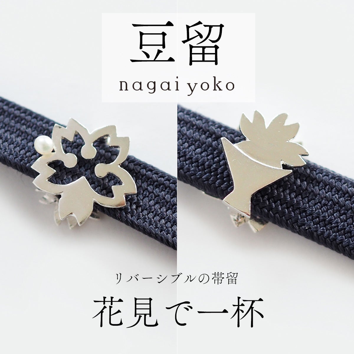 【豆留 by nagai yoko】2度楽しめるリバーシブルデザイン 花見で一杯 メッキ無 淡水パール