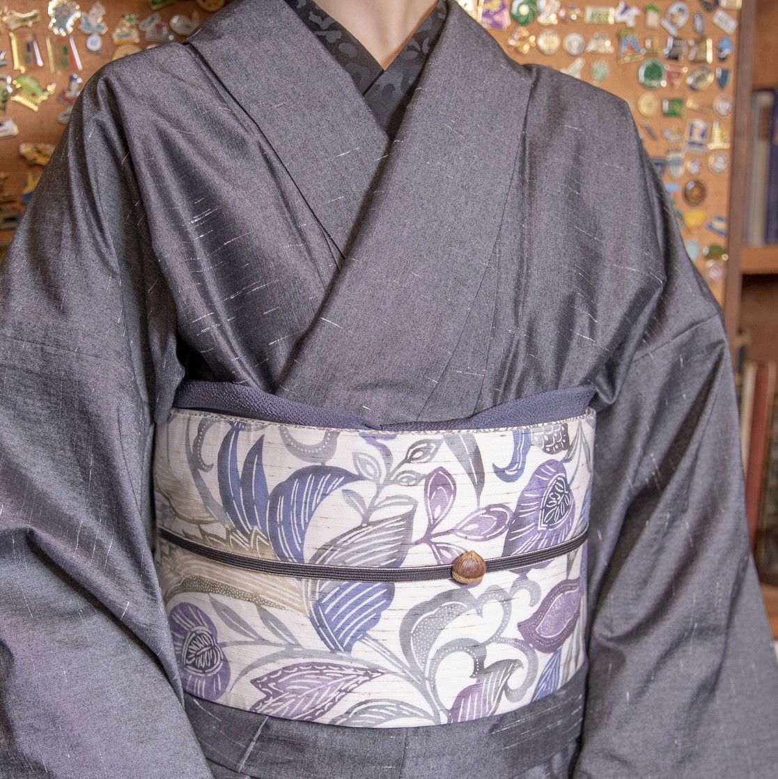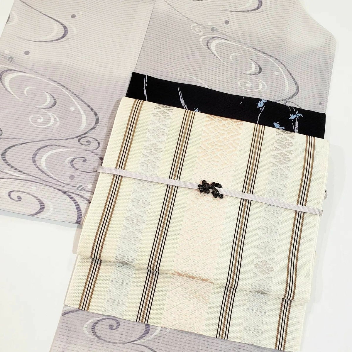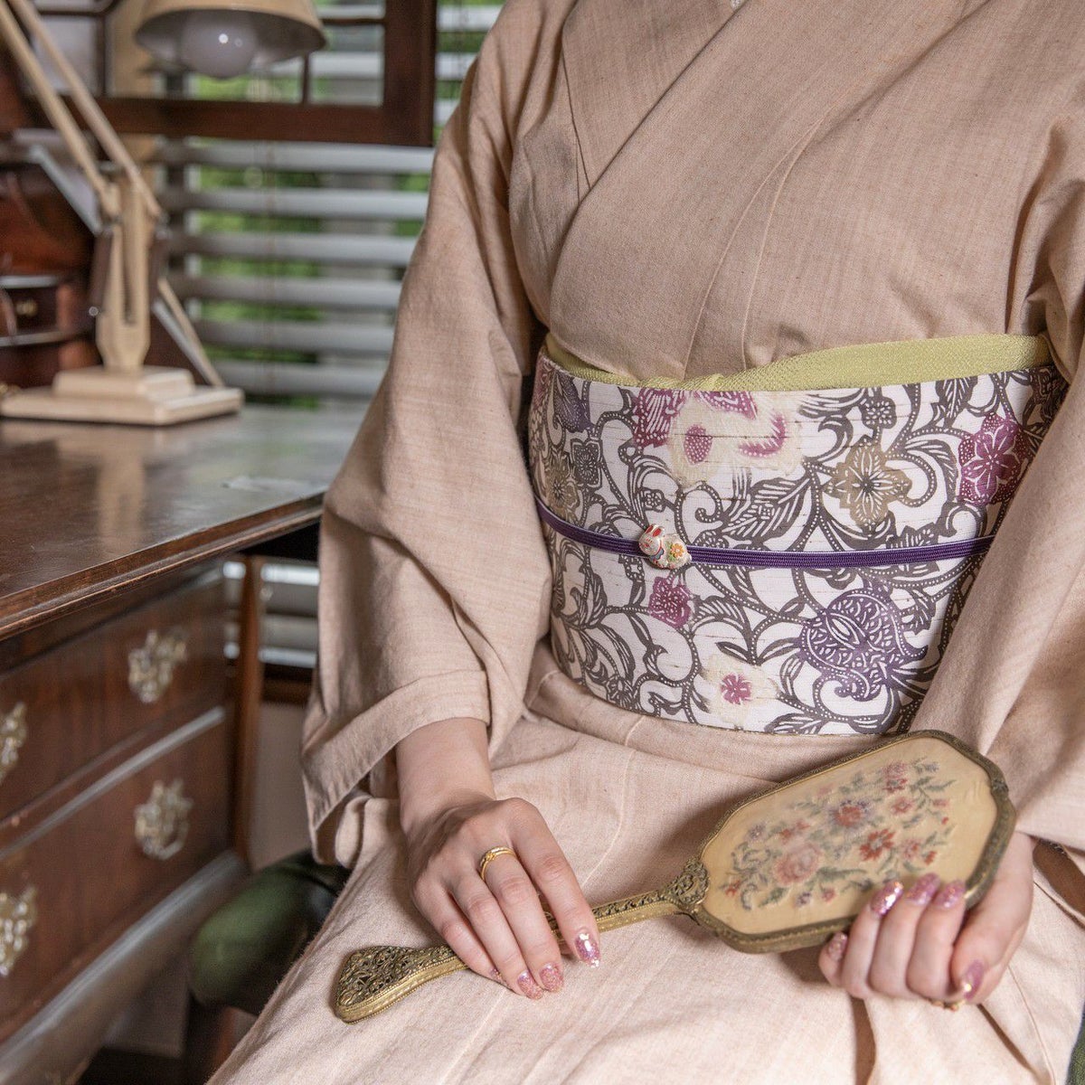 【そめもよう】some-pri 半幅帯 「大ヤタガラス ベージュ」 くるり