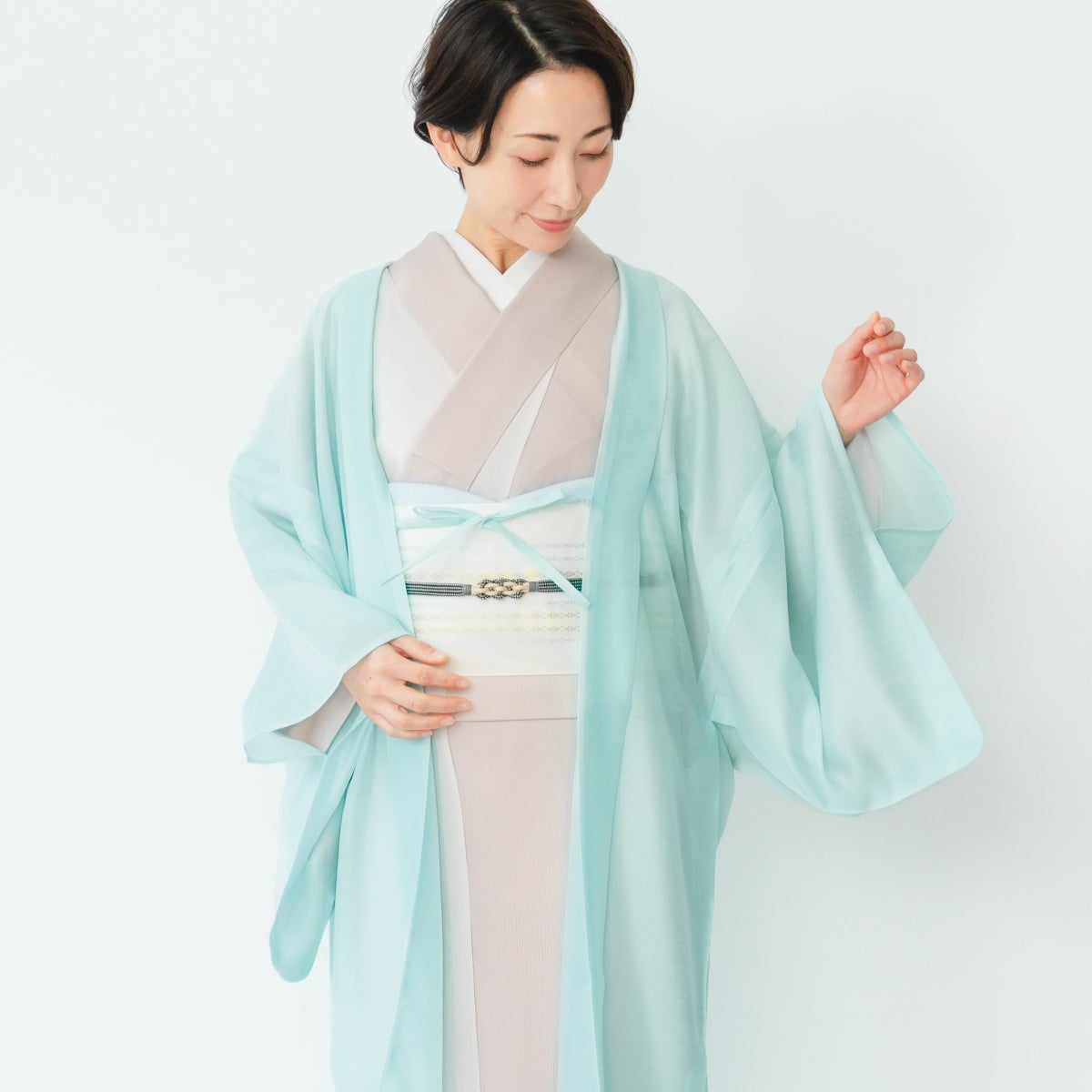 他の画像を見る ★早割り10%OFF 3/12(木)10時まで★【CHIKUMO-千雲-】洗える薄羽織 翠風/薄青磁 くるり 早割10%OFF 新着アイテム 送料無料 小柄な方にもおすすめ! 定価 ¥ 38,500 のところ 価格: ¥ 34,650 税込 カートに入れる お気に入りに登録する