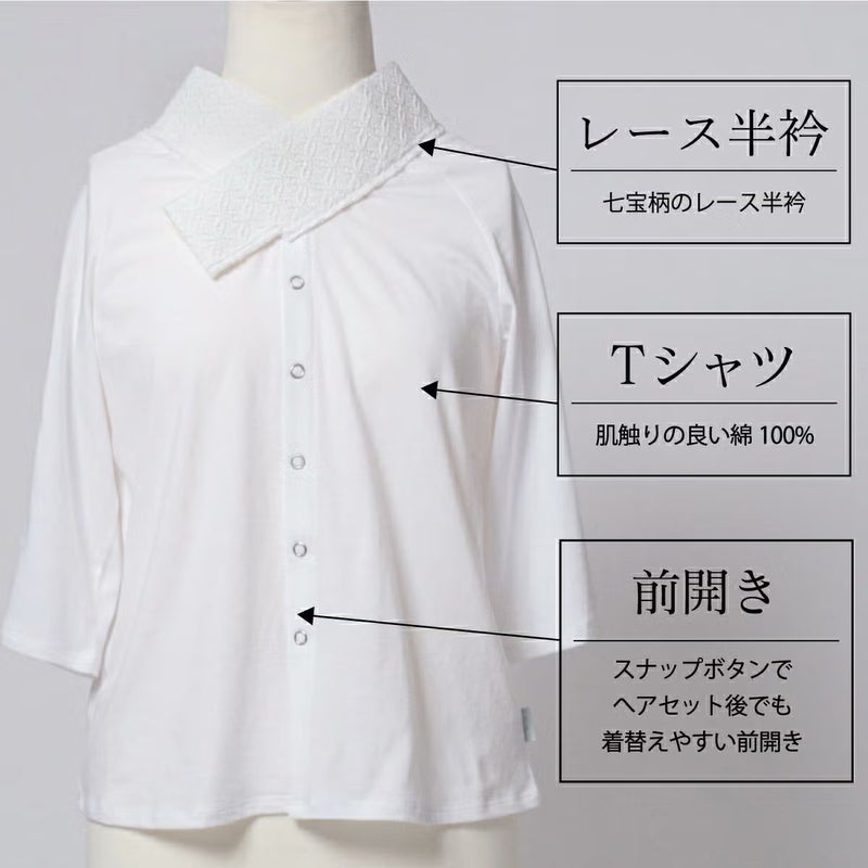 国内の老舗Tシャツ専門メーカーと共同開発したTシャツ型の襦袢です。