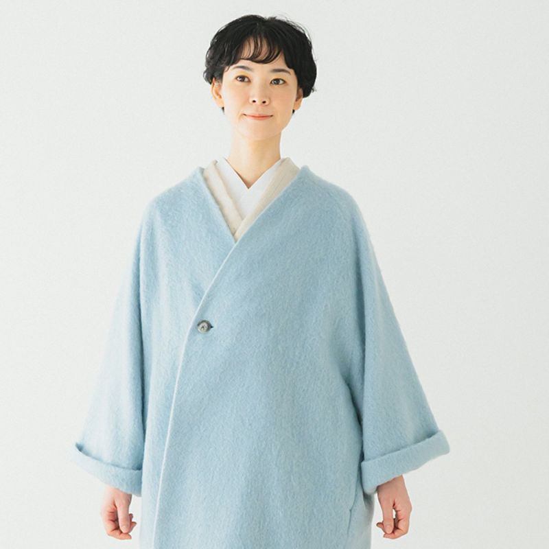 【CHIKUMO-千雲-】オリジナルデザインの【モヘアシャギーロングコート】は、着物にも洋服にもさらりと羽織れるデザイン。