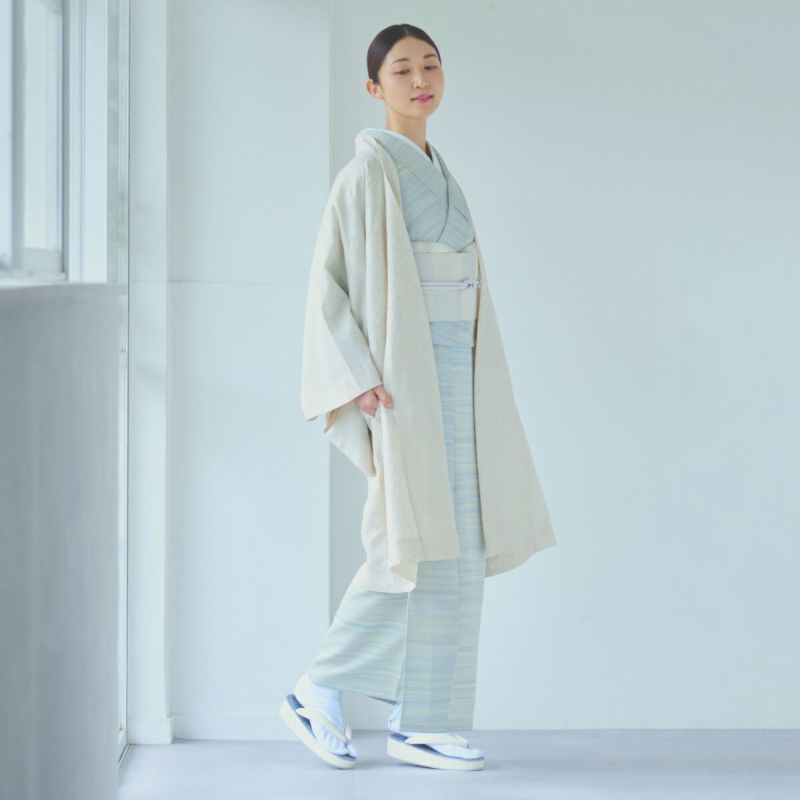 単衣仕立てで軽く、暑い時期にも雨除けとして着やすく、冬場は羽織ものの上に重ねて着ることができます。