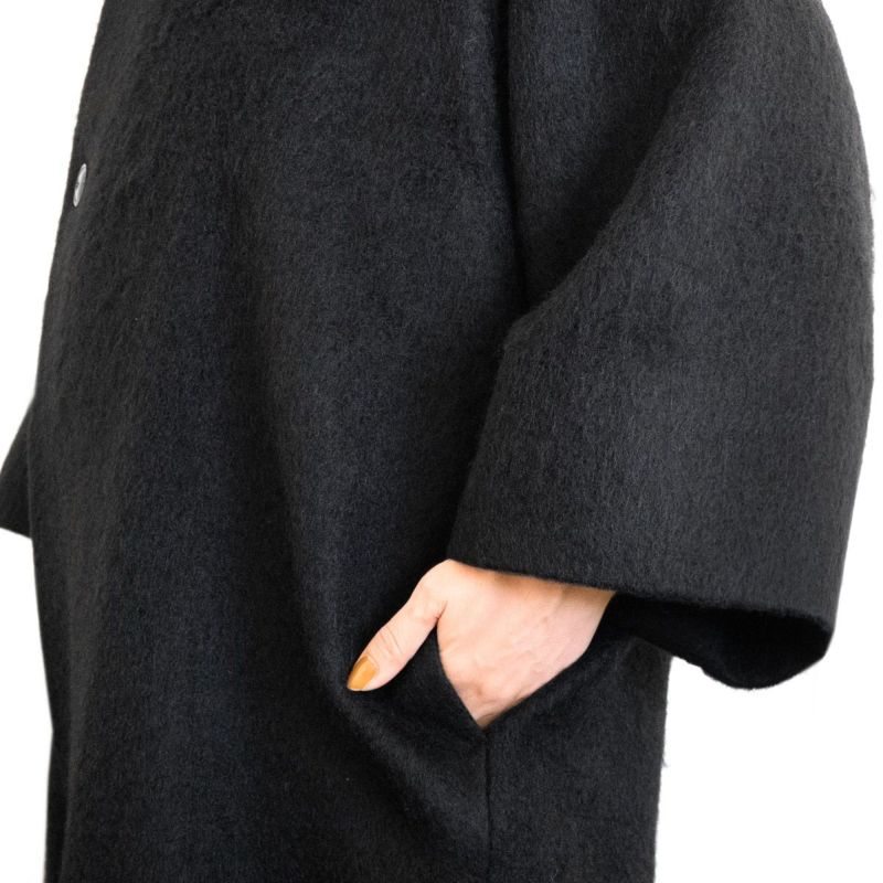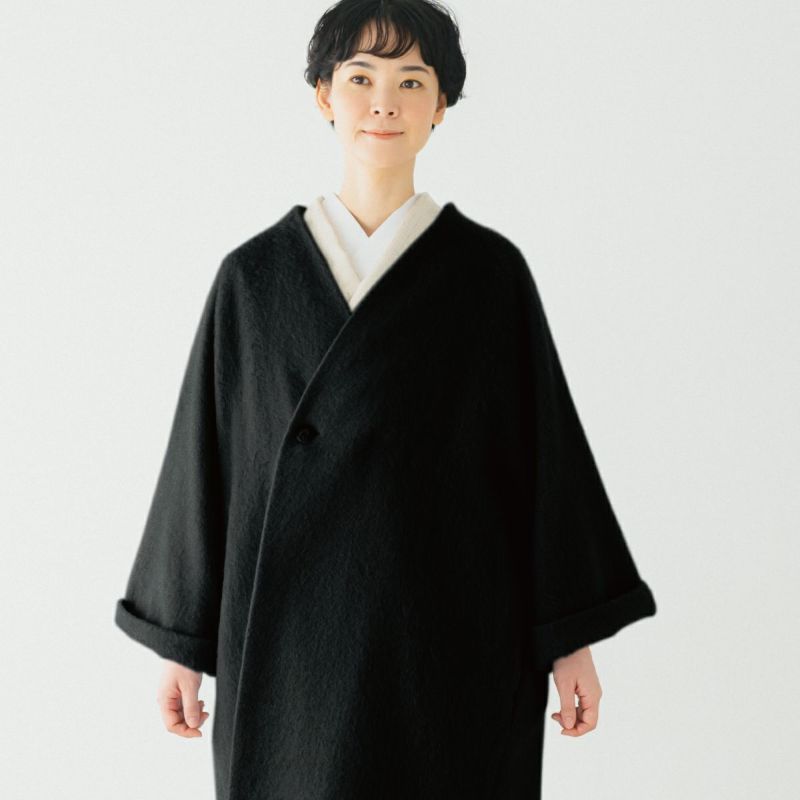 【CHIKUMO-千雲-】オリジナルデザインの【モヘアシャギーロングコート】は、着物にも洋服にもさらりと羽織れるデザイン。