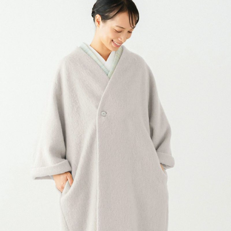 【CHIKUMO-千雲-】オリジナルデザインの【モヘアシャギーロングコート】は、着物にも洋服にもさらりと羽織れるデザイン。