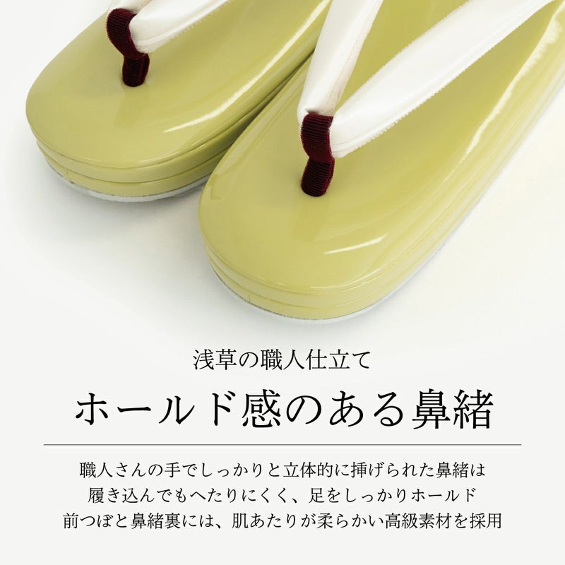 浅草の職人さん仕立ての鼻緒は、履き込んでもへたりにくく、足をしっかりとホールドしてくれます。