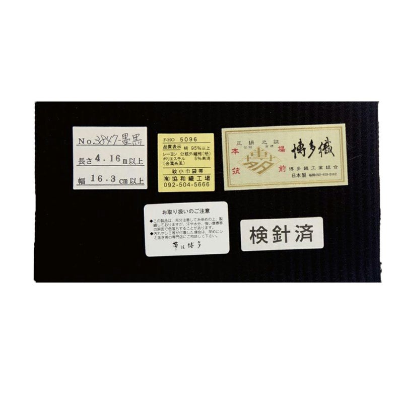 柔らかくもハリのある地風は、たくさんのタテ糸にヨコ糸を高密度で織り込んでいる博多織ならでは。 しなやかさと丈夫さを合わせ持っています。 しっかりと締めやすく、また緩みにくいので、一日中美しい帯結びを保つことができます。 およそ415cmと長尺のため、多様な結び方で個性を出せるのも半幅帯の楽しいところ。