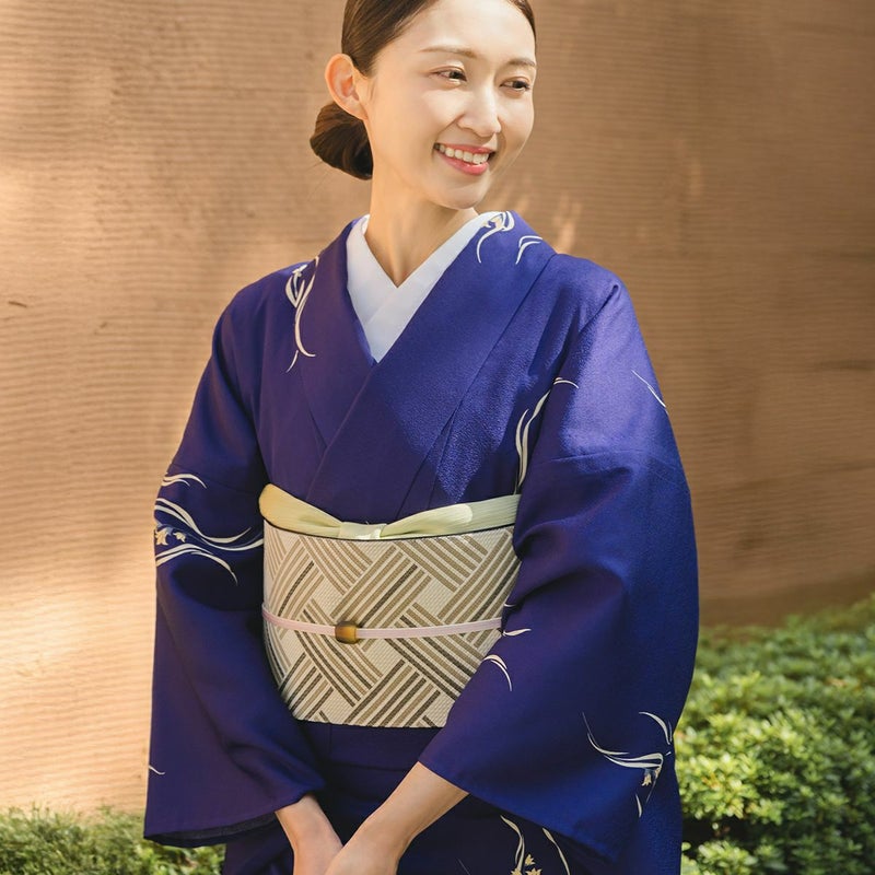上質な大人の半幅帯は、気軽なおしゃれを楽しみたい時にぴったり。 帯揚げ、帯締め、帯留めなどの小物を合わせれば、いっそう楽しく。 デニム着物や紬、気軽な小紋に合わせて、観劇やお食事などのお出掛けに。また、変わり結びをして、かしこまらないドレスアップも。 軽くて着心地が楽なので、旅行にもぴったりです。