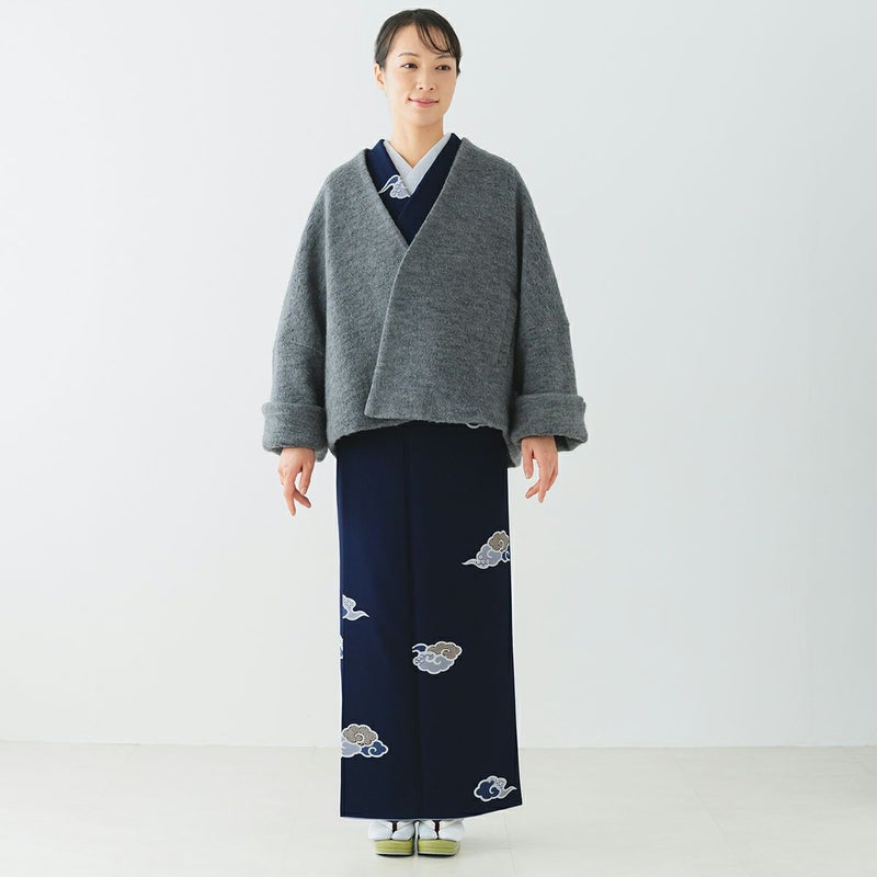 身幅をたっぷり取ったゆったりシルエットで、着物の袖や帯結びもふんわりと収めてくれます。