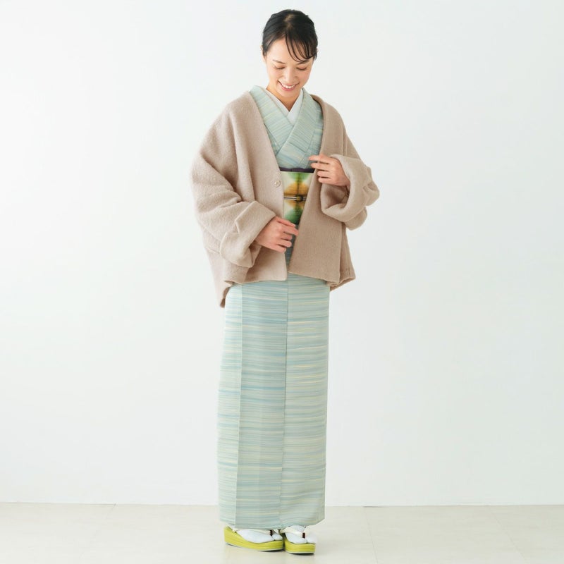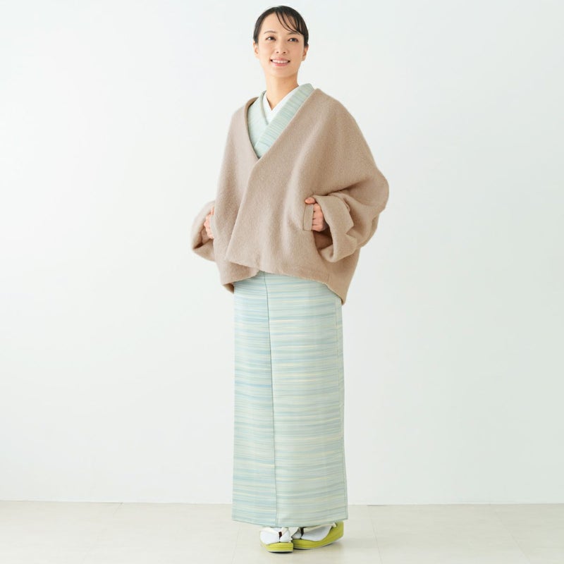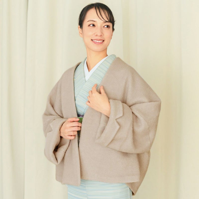 身幅をたっぷり取ったゆったりシルエットで、着物の袖や帯結びもふんわりと収めてくれます。