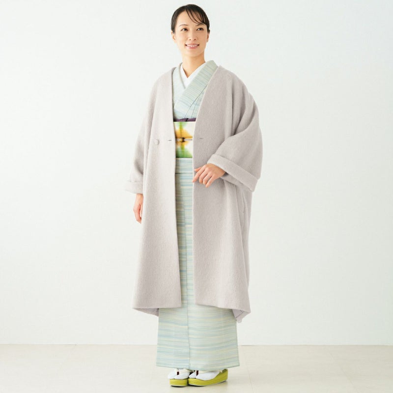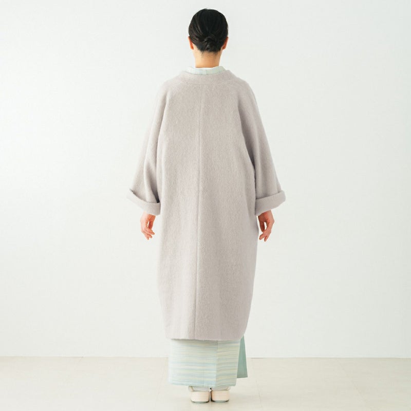【CHIKUMO-千雲-】オリジナルデザインの【モヘアシャギーロングコート】は、着物にも洋服にもさらりと羽織れるデザイン。