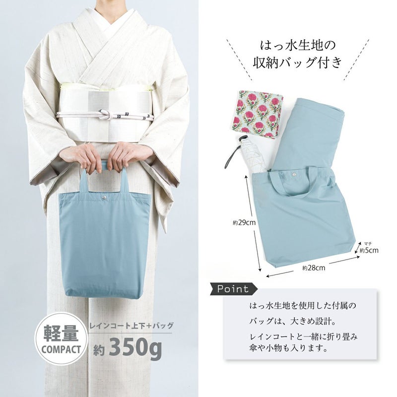 レインコートに求めるのは、着物を雨からしっかり守ること、さっと簡単に着脱できること、気軽に携帯できること。
