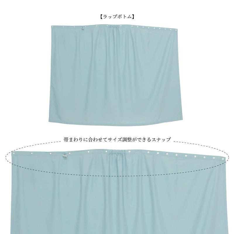 ラップ式のボトムは、着物の裾にぴったりの丈で巻くことができるので、裾をしっかりカバーして泥はねから守ってくれます。