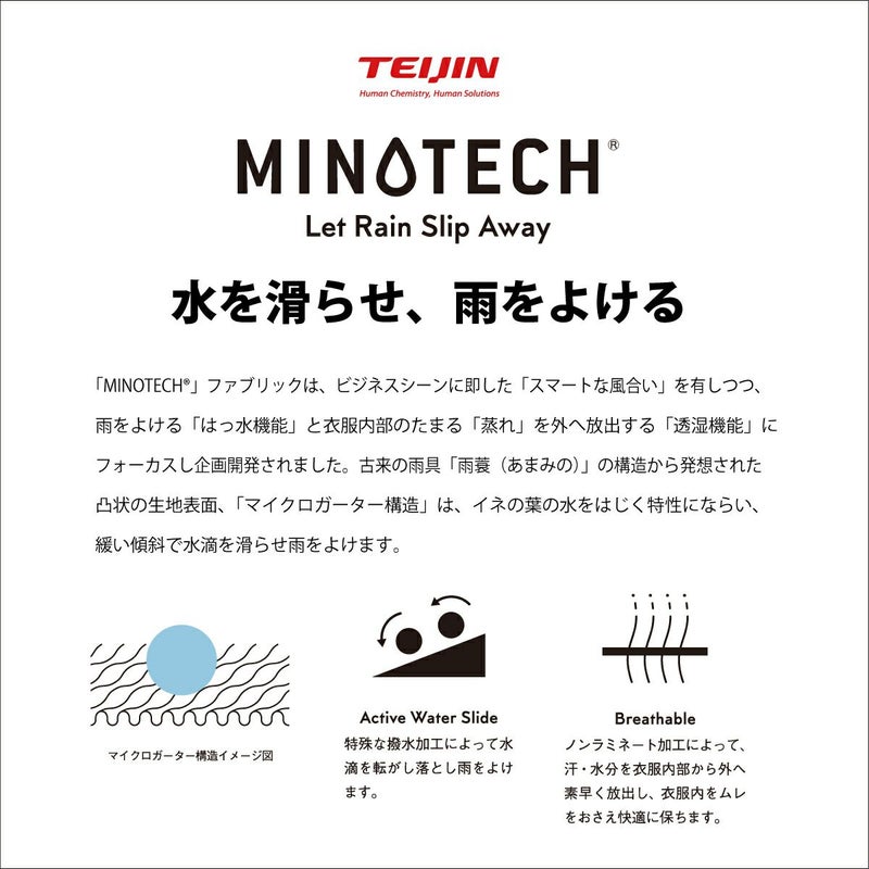 帝人フロンティアが開発した「MINOTECH®」ミノテック®を採用。