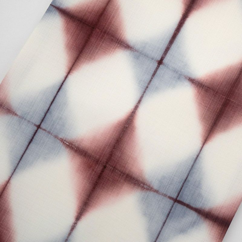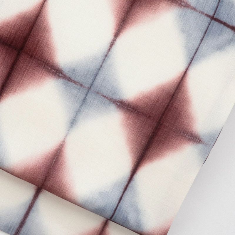 大胆な菱形の格子模様がモダンな雰囲気を醸し出し、繊細で色鮮やかな染めが目を惹きます。