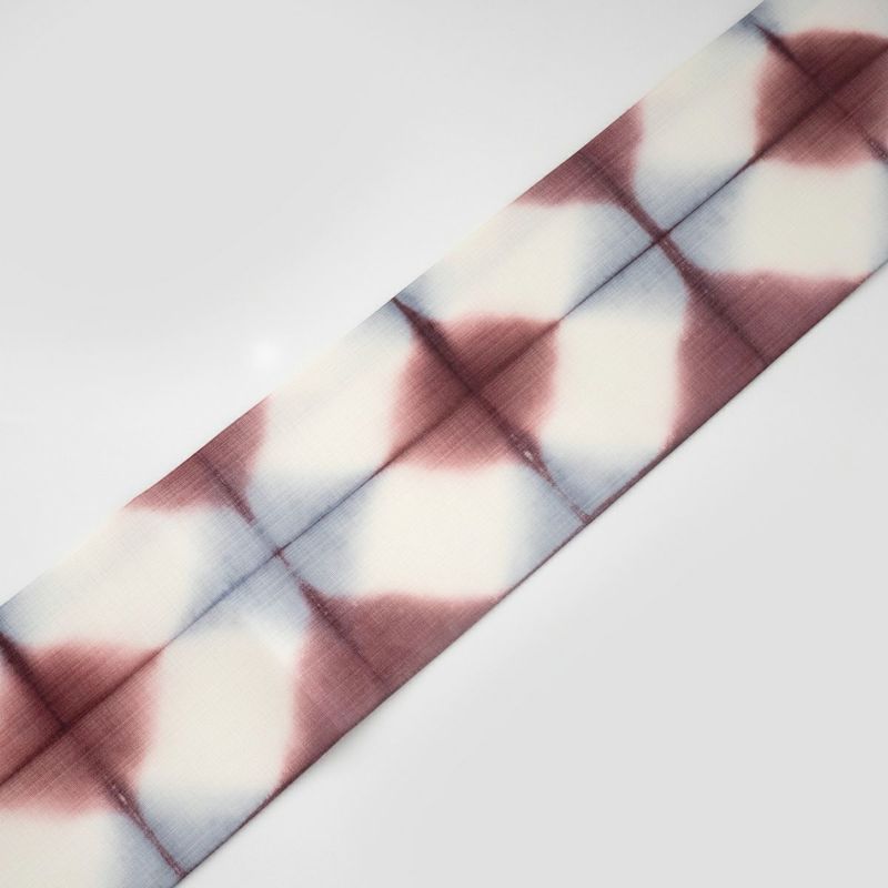 板締め絞りという技法で、板を使用し染め上げる工程はもちろん全て職人さんの手作業。
