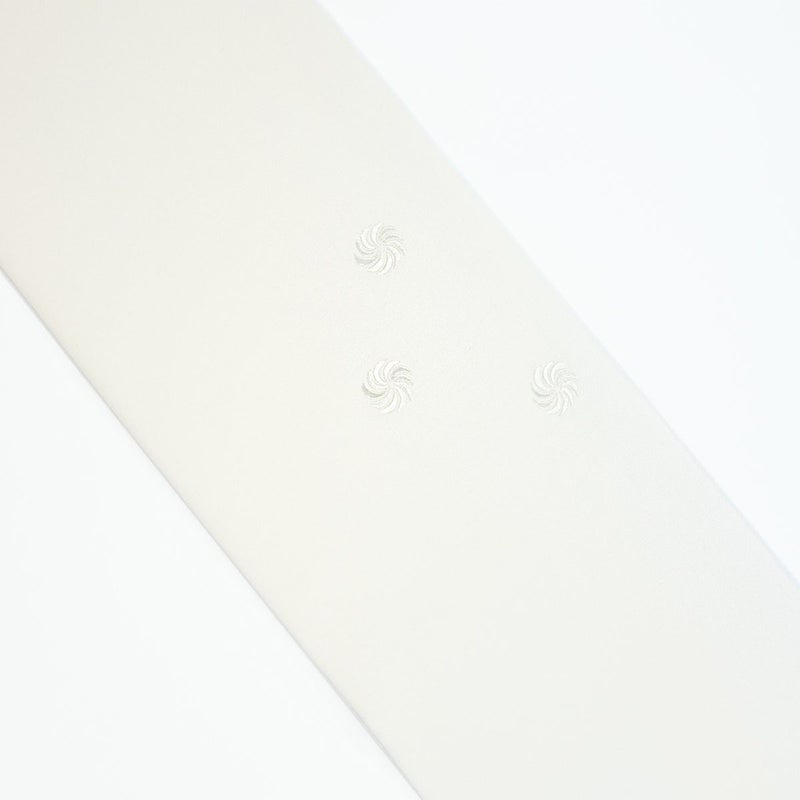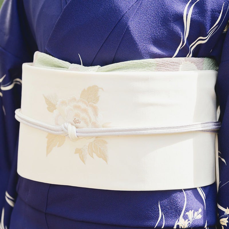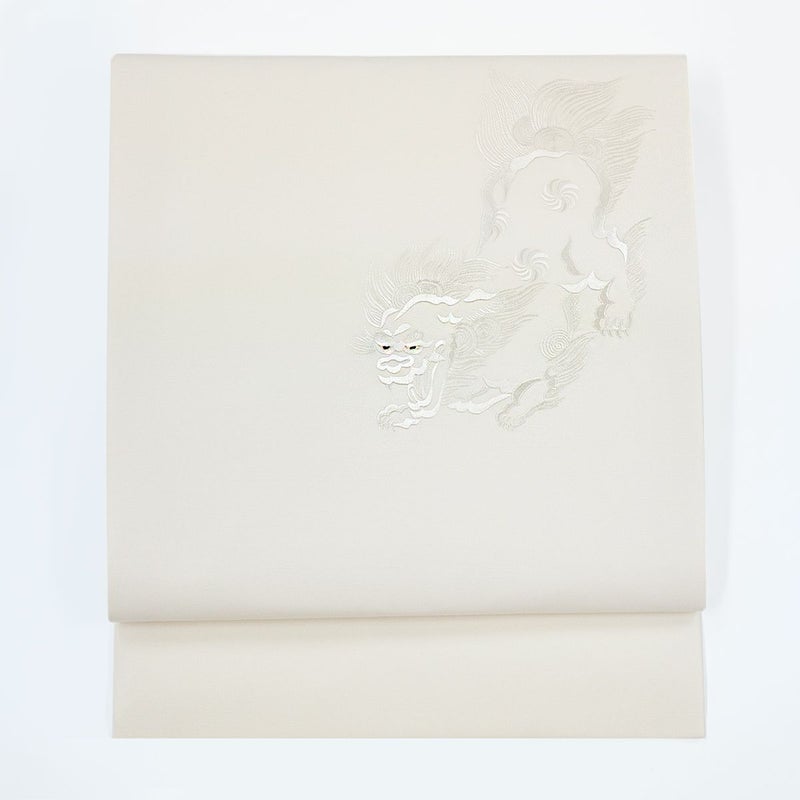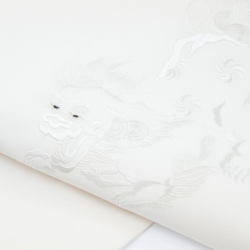 帯地は清潔感と落ち着きのあるオフホワイト。控えめな色調の刺繍が奥ゆかしく、美しい陰影を生み出します。