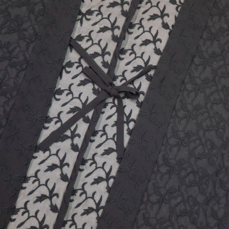 軽やかなシフォン生地に、伸びやかな花唐草柄の刺繍が全面にほどこされた薄羽織です。