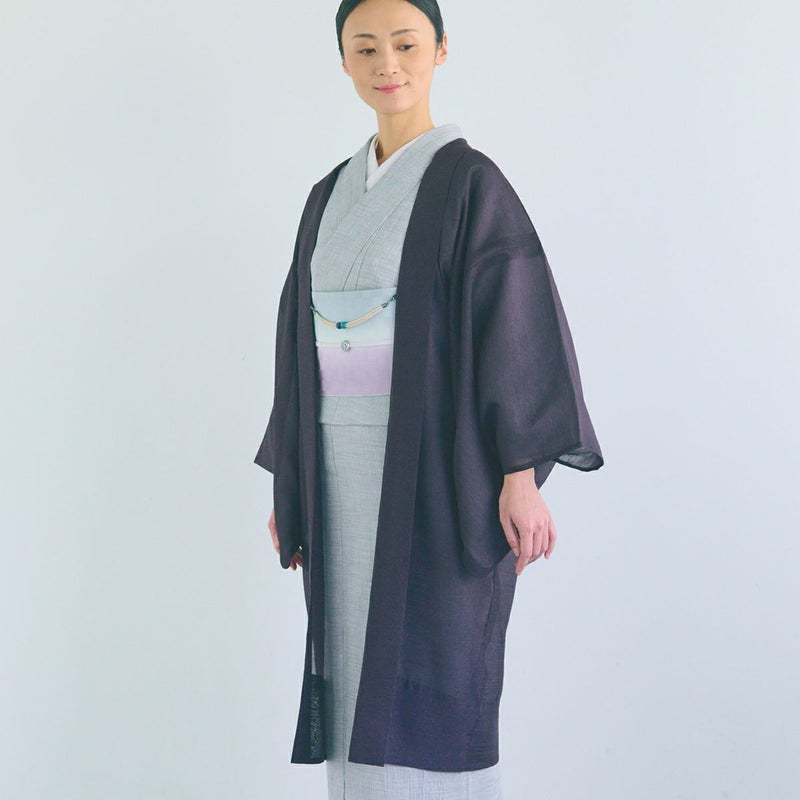 透け感の美しさと上品な色合いが特徴の紗紬風の薄羽織です。