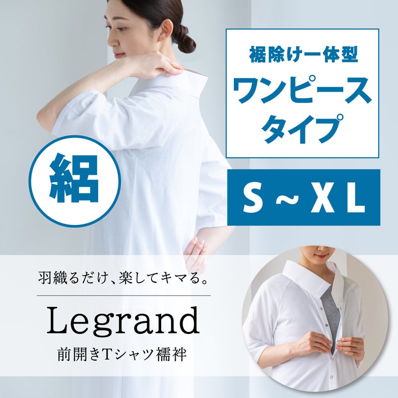 「東レ シルック」絽半衿付きのTシャツ襦袢に、滑りがよくストレッチ性のあるポリエステル素材の裾除けが付いたワンピースタイプです。