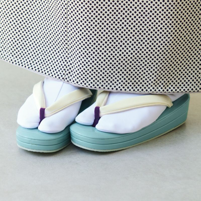 底に鼻緒の挿げ穴がなく、水が浸み込みにくいウォータープルーフ仕様です。
