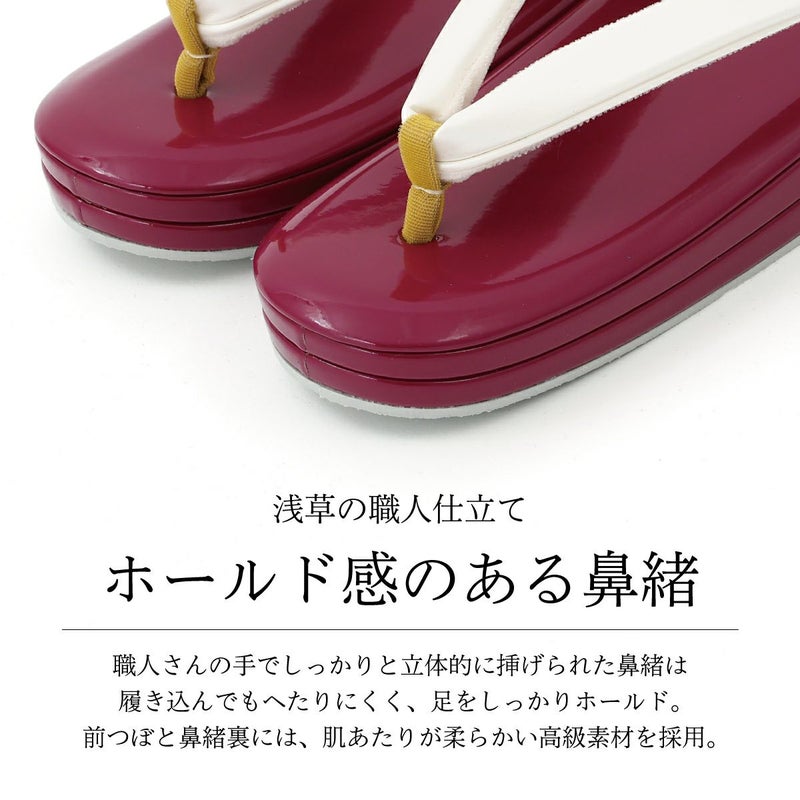 浅草の職人さん仕立ての鼻緒は、履き込んでもへたりにくく、足をしっかりとホールドしてくれます。