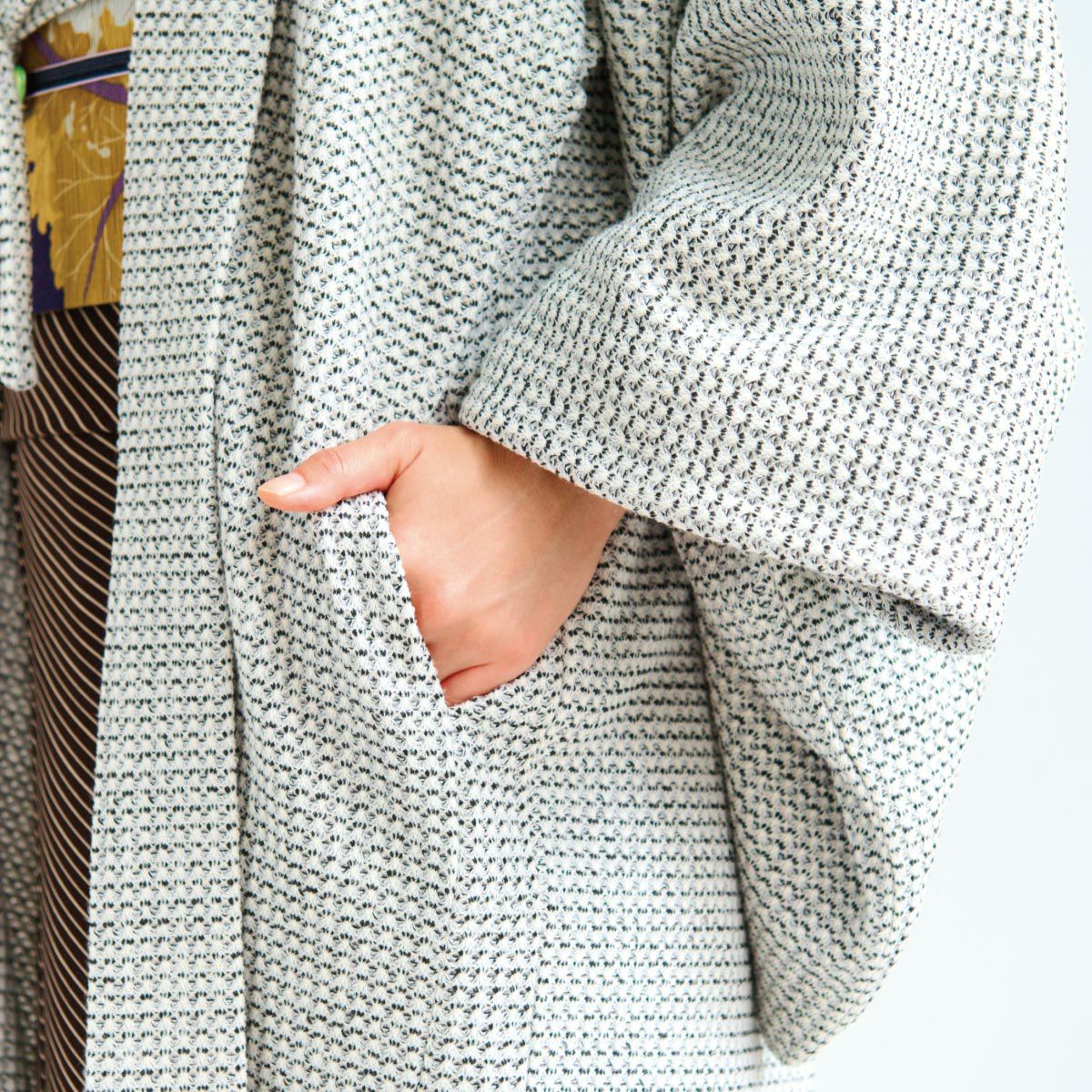 他の画像を見る 【CHIKUMO-千雲-】洗える薄羽織 シフォンジャガード ストライプ オフホワイト(90cm丈)くるり 送料無料 価格: ¥ 30,800 税込 在庫切れ 再入荷お知らせ お気に入りに登録する