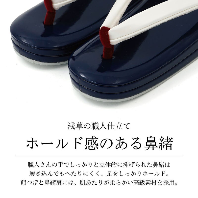 浅草の職人さん仕立ての鼻緒は、履き込んでもへたりにくく、足をしっかりとホールドしてくれます。