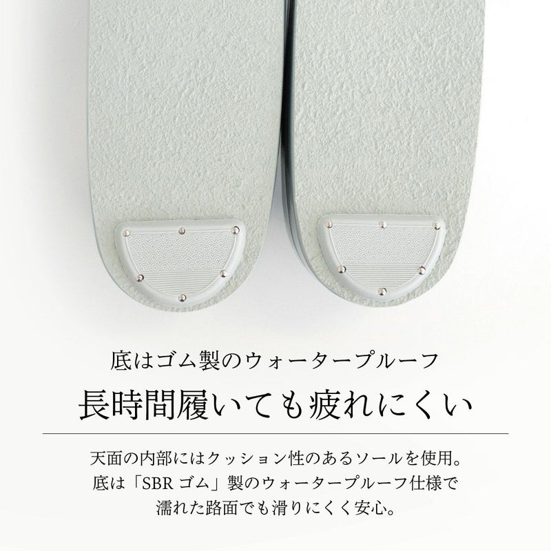 底に鼻緒の挿げ穴がなく、水が浸み込みにくいウォータープルーフ仕様です。