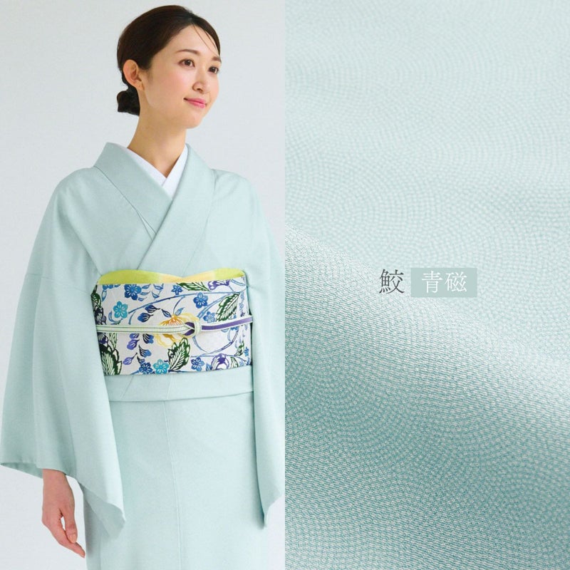 江戸小紋の定番柄「鮫」をスタイリッシュなカラーで染めた、大人のための上質な洗える着物です。