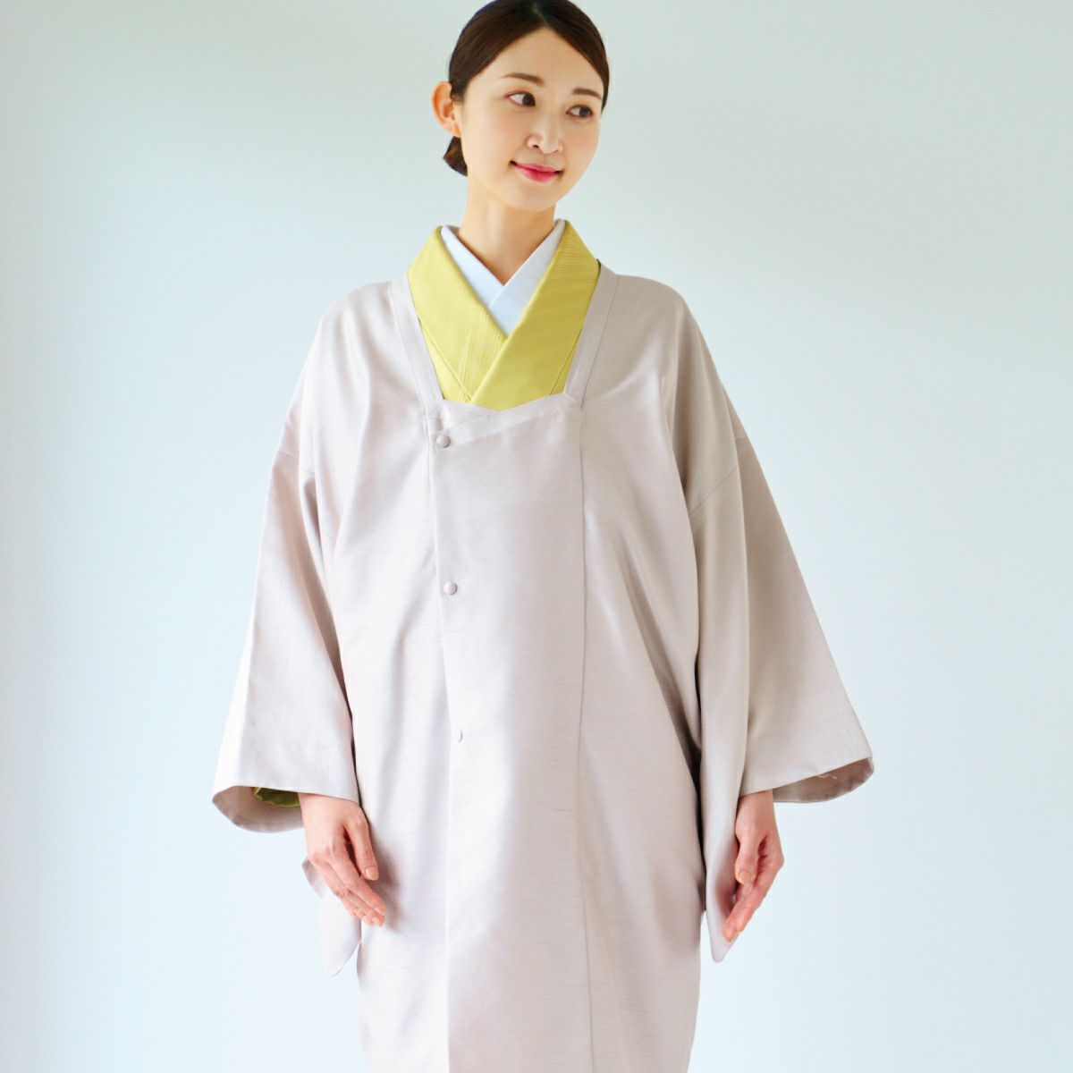 撥水加工を施しているので、別売りの【裾除けシャンタン】とセットアップで雨コートとしても活躍します。
